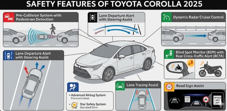 Safety is a top priority for modern car buyers. Toyota has included several safety systems in the 2025 Corolla.
