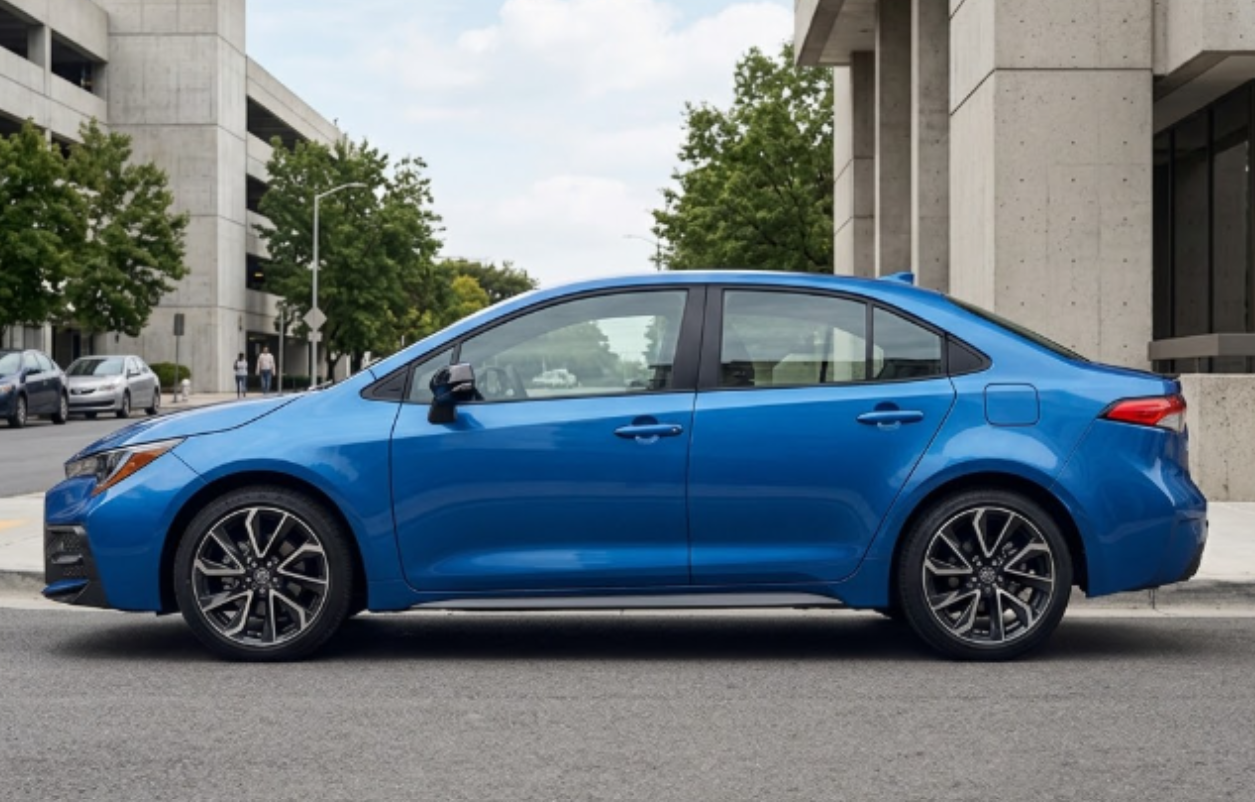 The 2025 Corolla maintains the “Corolla X” styling that people adore. It has a very aggressive front fascia. The bumper design is sporty and low-slung. This gives the car a modern road presence.